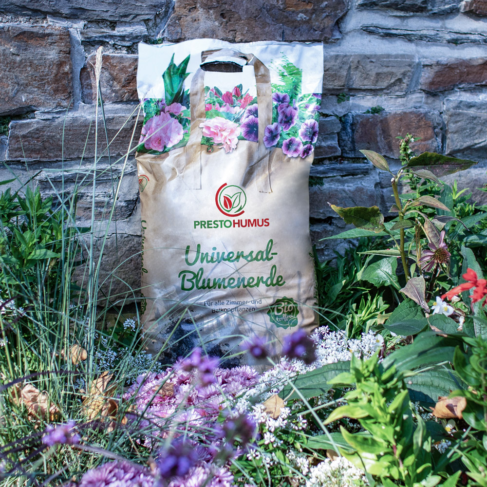 Für alle Blumen und Pflanzen einsetzbar. Dank der stabilen Struktur auch für die Anwendung in kleineren Pflanzgefäßen geeignet. Die besondere Mischung aus Rindenhumus und RAL-Substratkompost aktiviert außerdem die Bodenorganismen.