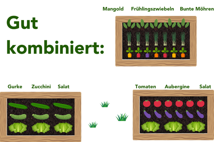 - Gemüse wie Tomaten, Zucchini, Salat oder Karotten.