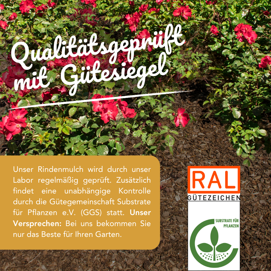 Schutz vor Frost und Unkrautbefall Geprüfte Qualität nach RAL „Substrate für Pflanzen“ GZ-250/1-1 Zur Abdeckung von Beeten, Pflanzflächen und Ziergehölzen 50% Recyclinganteil in der FolieRindenmulch fein für dekorative Kübel und Beetgestaltung